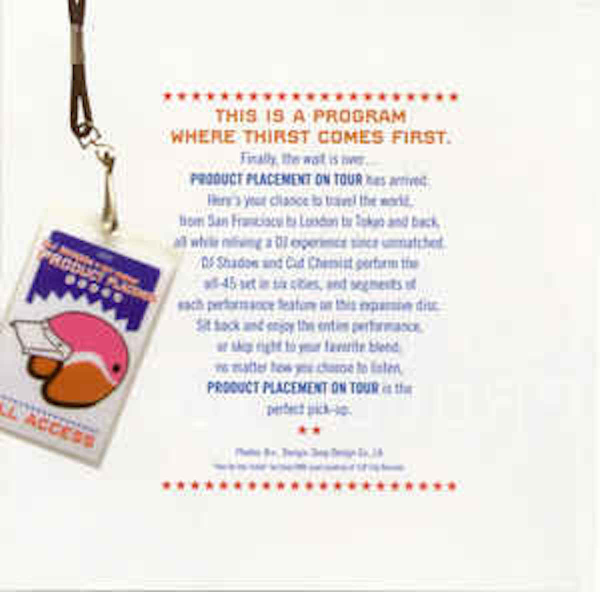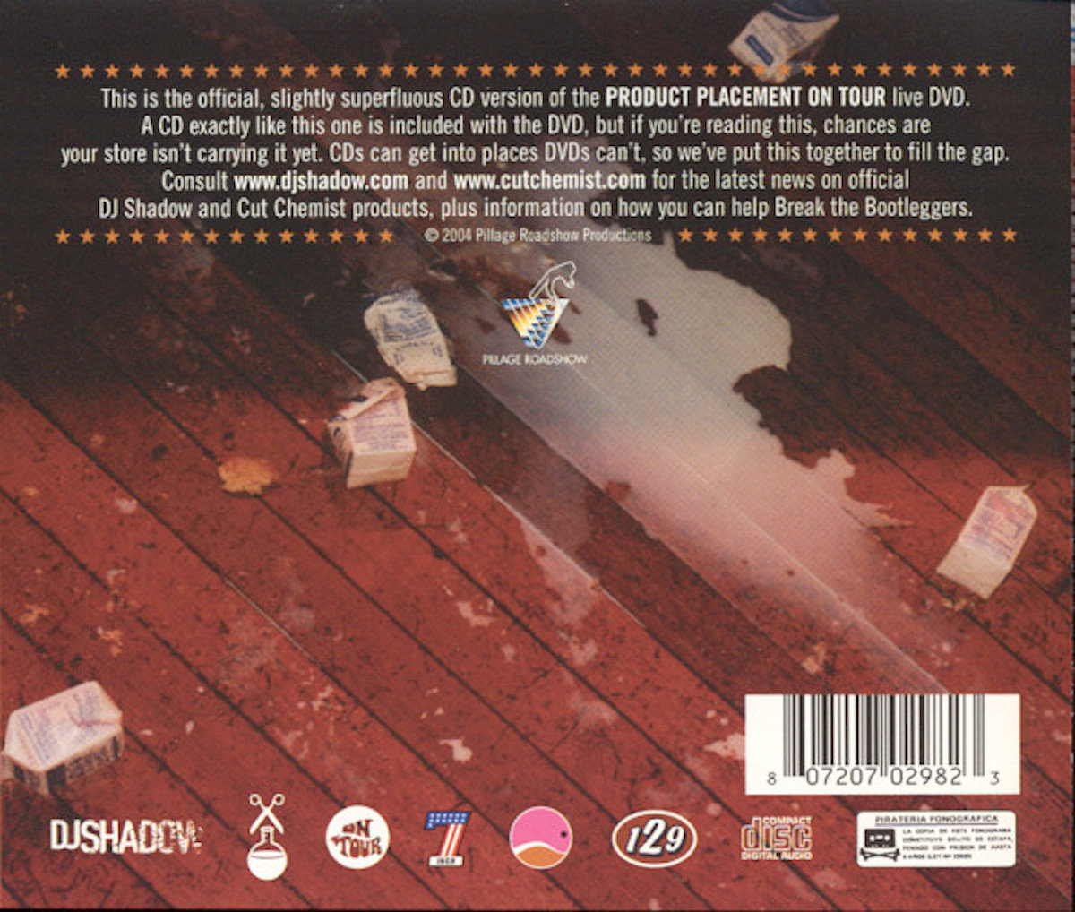 Rare! Live tour version of Cut Chemist and DJ Shadow's traveling 45 set, Product Placement, 2004. These CDs were recently uncovered in a big overhaul at the Stable and may be the last sealed copies we'll ever see.